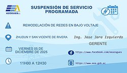 SUSPENSION DE SERVICIO EN ZHUDUN Y SAN VICENTE DE RIVERA..