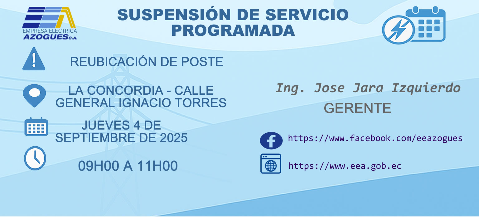 SUSPENSION DE SERVICIO EN LA CONCORDIA - CALLE GENERAL IGNACIO TORRES