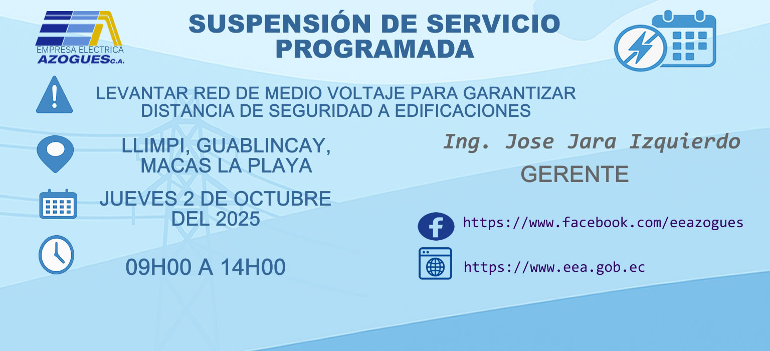 SUSPENSION DE SERVICIO EN LLIMPI, GUABLINCAY, MACAS LA PLAYA
