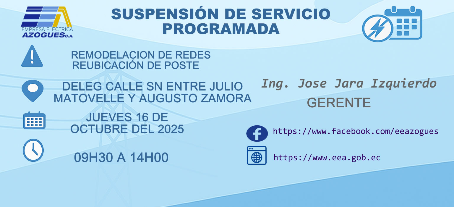 SUSPENSION DE SERVICIOS EN DELEG CALLE SN ENTRE JULIO MATOVELLE Y AUGUSTO ZAMORA