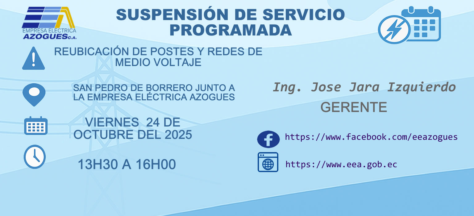 SUSPENSIÓN DE SERVICIO EN SAN PEDRO DE BORRERO JUNTO A LA EMPRESA ELÉCTRICA AZOGUES