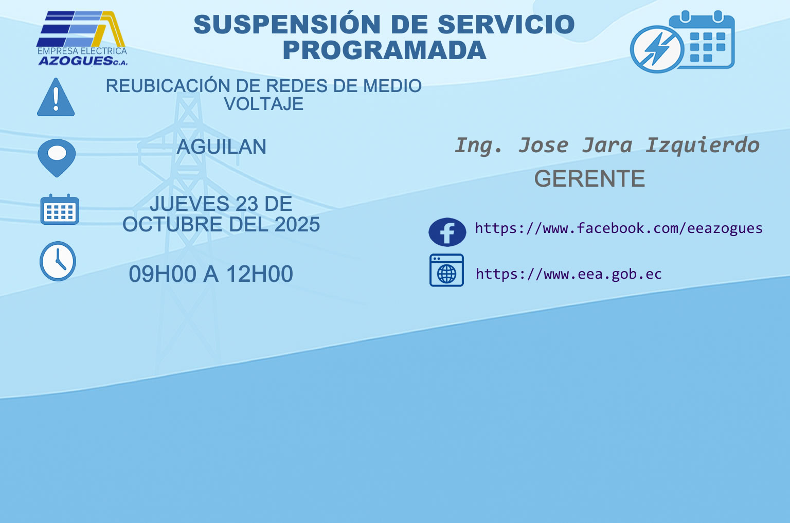 SUSPENSIÓN DE SERVICIO EN ZHIZHIQUÍN - BARRIO EL MIRADOR - CALLE TOBIAS TORRES Y DEL MAESTRO - BOLIVIA - AV. ANDRES F. CÓRDOVA Y AURELIO JARAMILLO