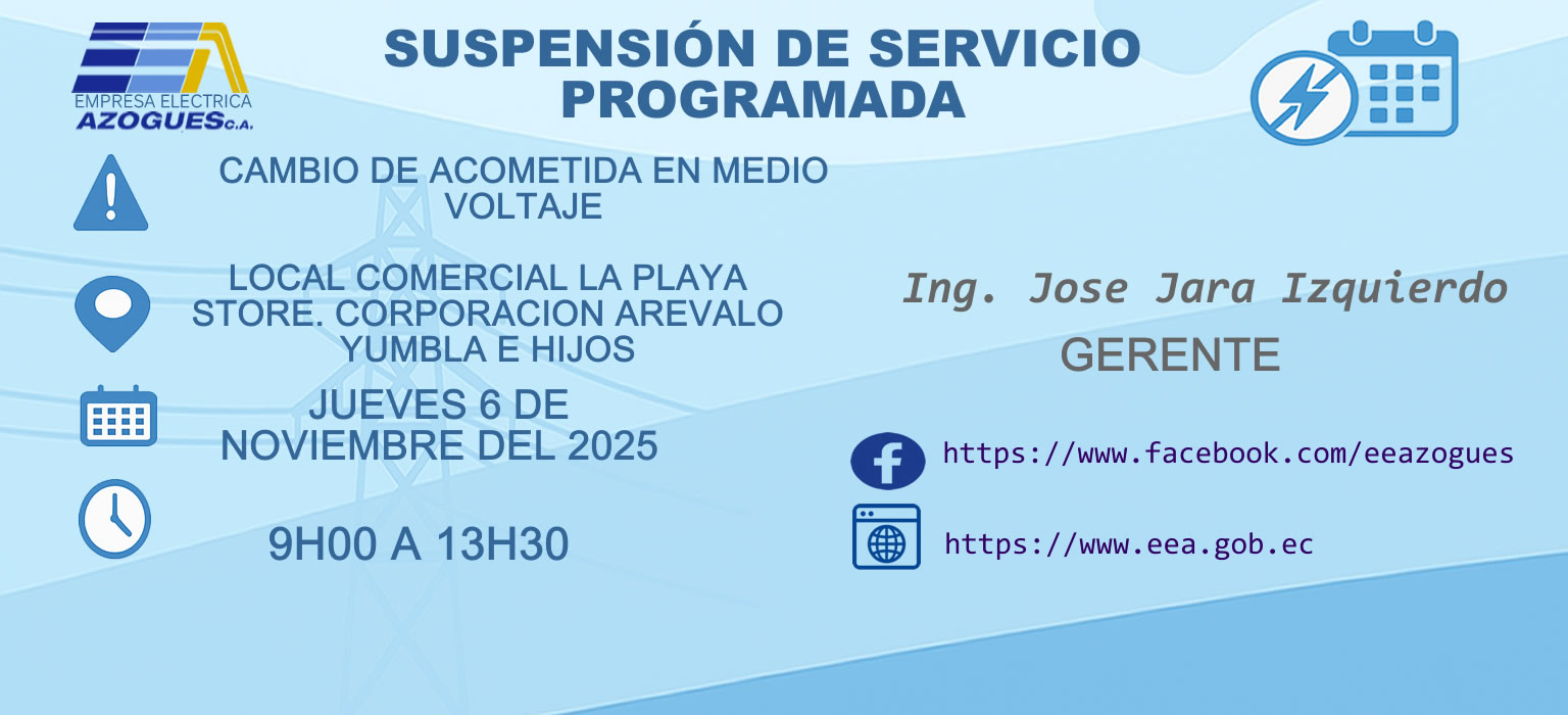 SUSPENSION DE SERVICIO EN LOCAL COMERCIAL LA PLAYA STORE. CORPORACION AREVALO YUMBLA E HIJOS