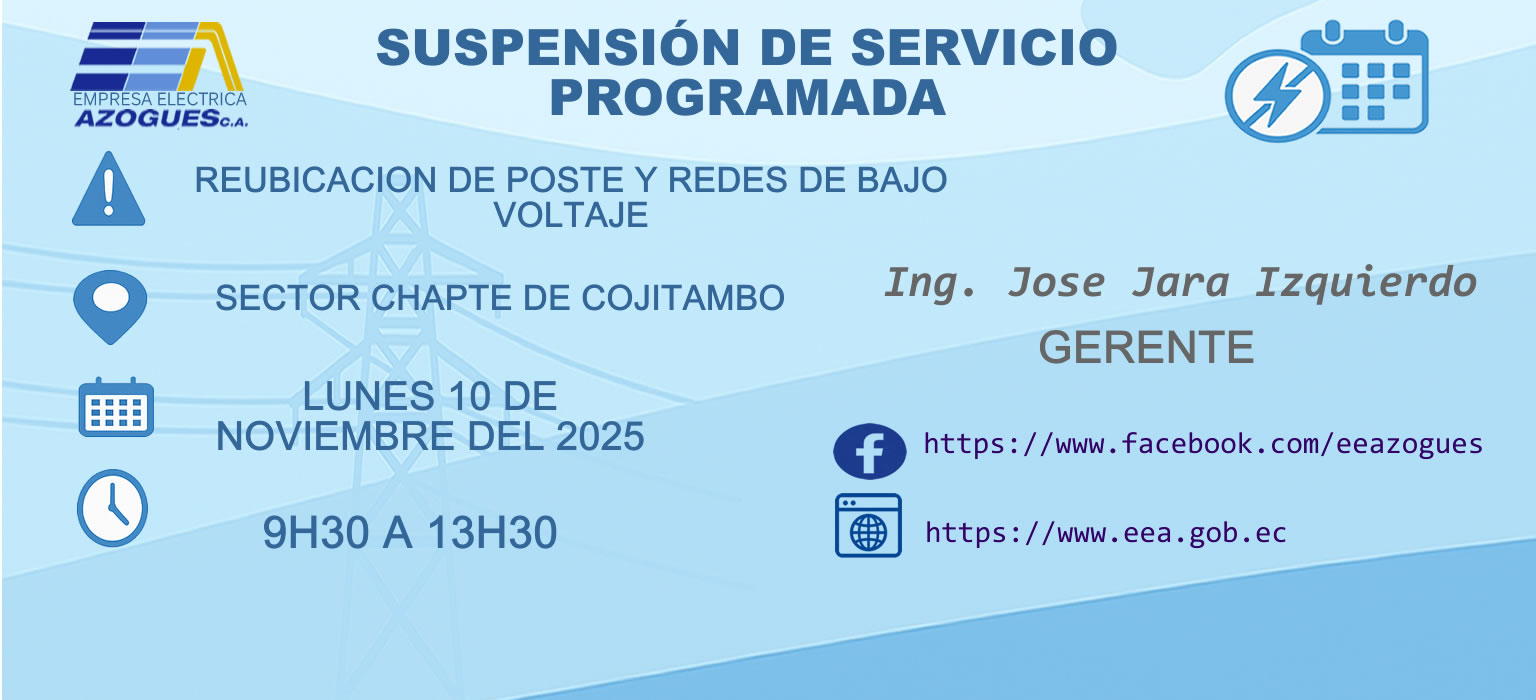 SUSPENSION DE SERVICIO EN SECTOR CHAPTE DE COJITAMBO