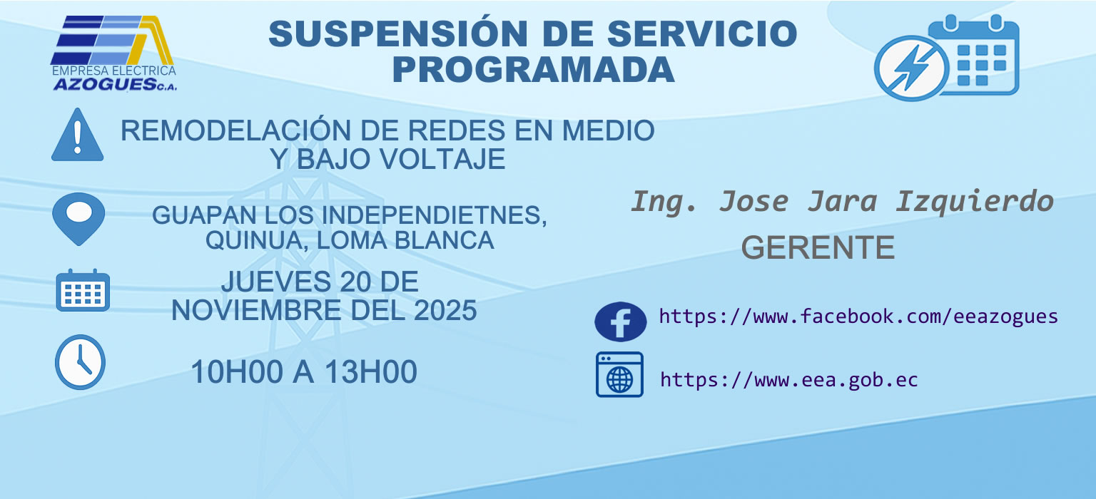 SUSPENSION DE SERVICIO EN GUAPAN LOS INDEPENDIETNES, QUINUA, LOMA BLANCA.